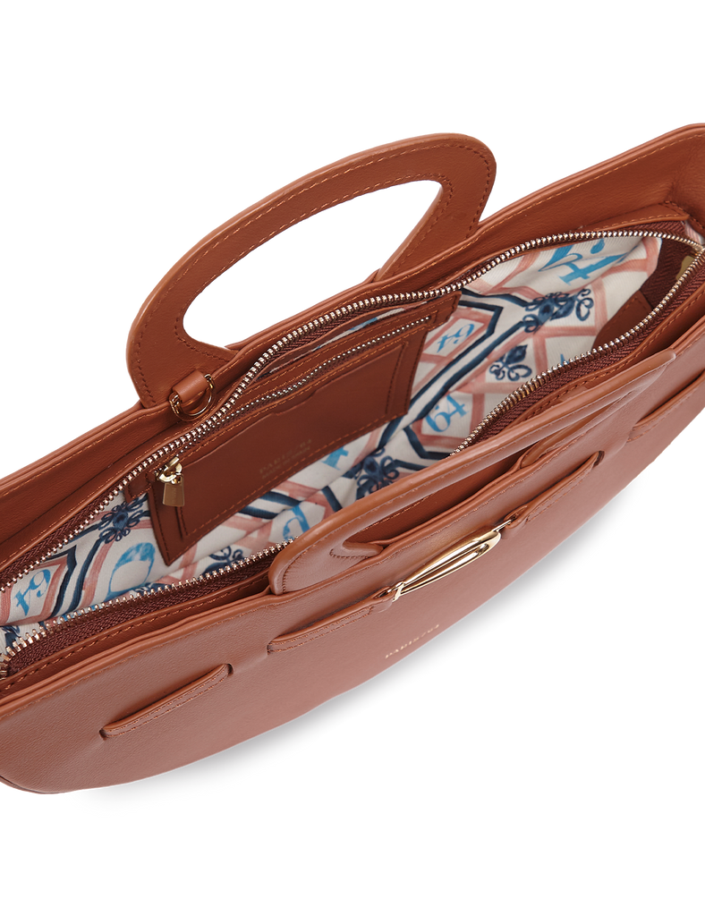 La versión mini del bolso Galope conserva toda la elegancia de su silueta original, en un formato más ligero y versátil. Con asas acolchadas para un agarre cómodo y delicado, y una correa ajustable que permite llevarlo como bandolera.