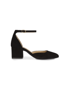Black stiletto with midi heel handcrafted in Spain in very soft suede leather.