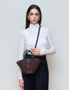 The Mini Lumière is the mini version of the Lumière family, an iconic bag from the brand in cacao brown leather and suede. Timeless design with clean lines and high-quality leather and finishes.