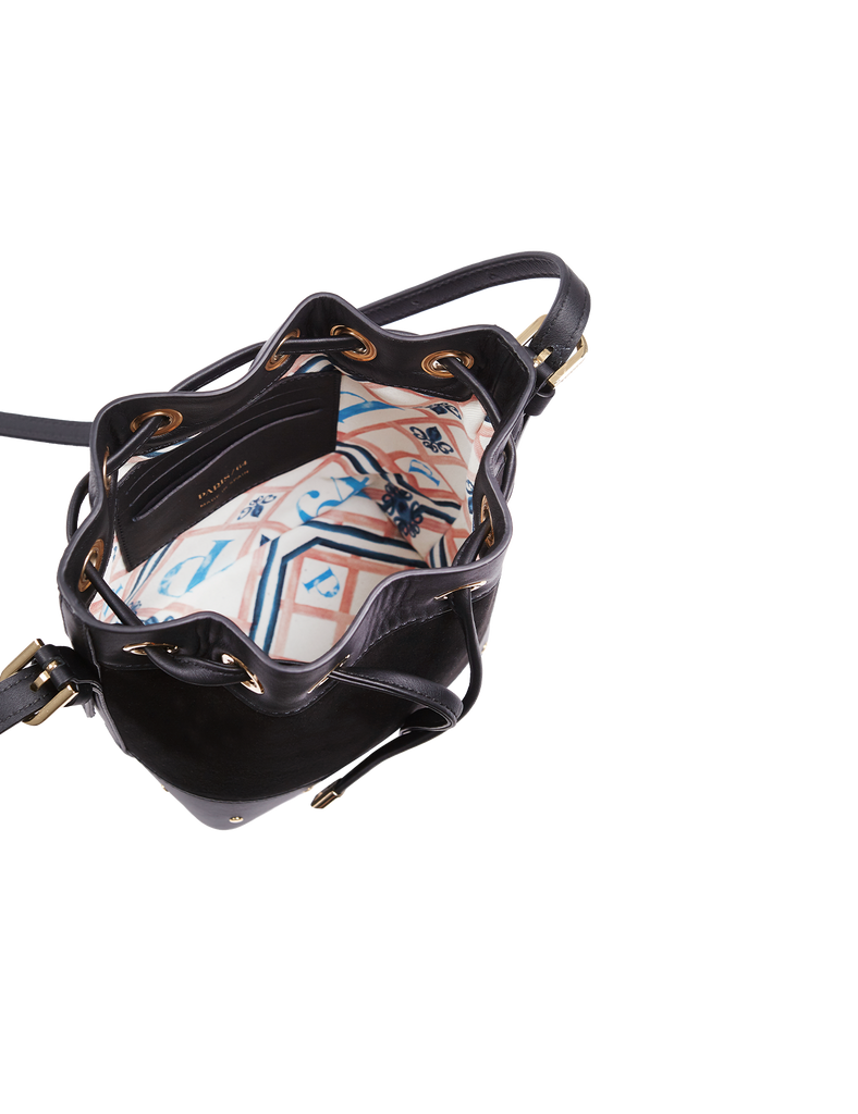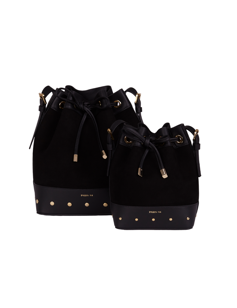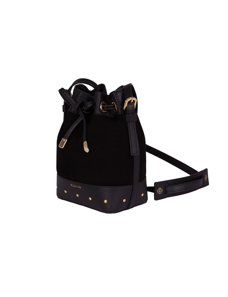 La versión más mini de la familia Always. Bolso saco de ante y piel de color marrón cacao de forma estructurada y acabado ultra suave al tacto.