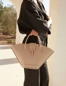 Icône de la maison en cuir d’origine bovine beige. Un design intemporel aux lignes épurées, avec des finitions et un cuir de haute qualité.